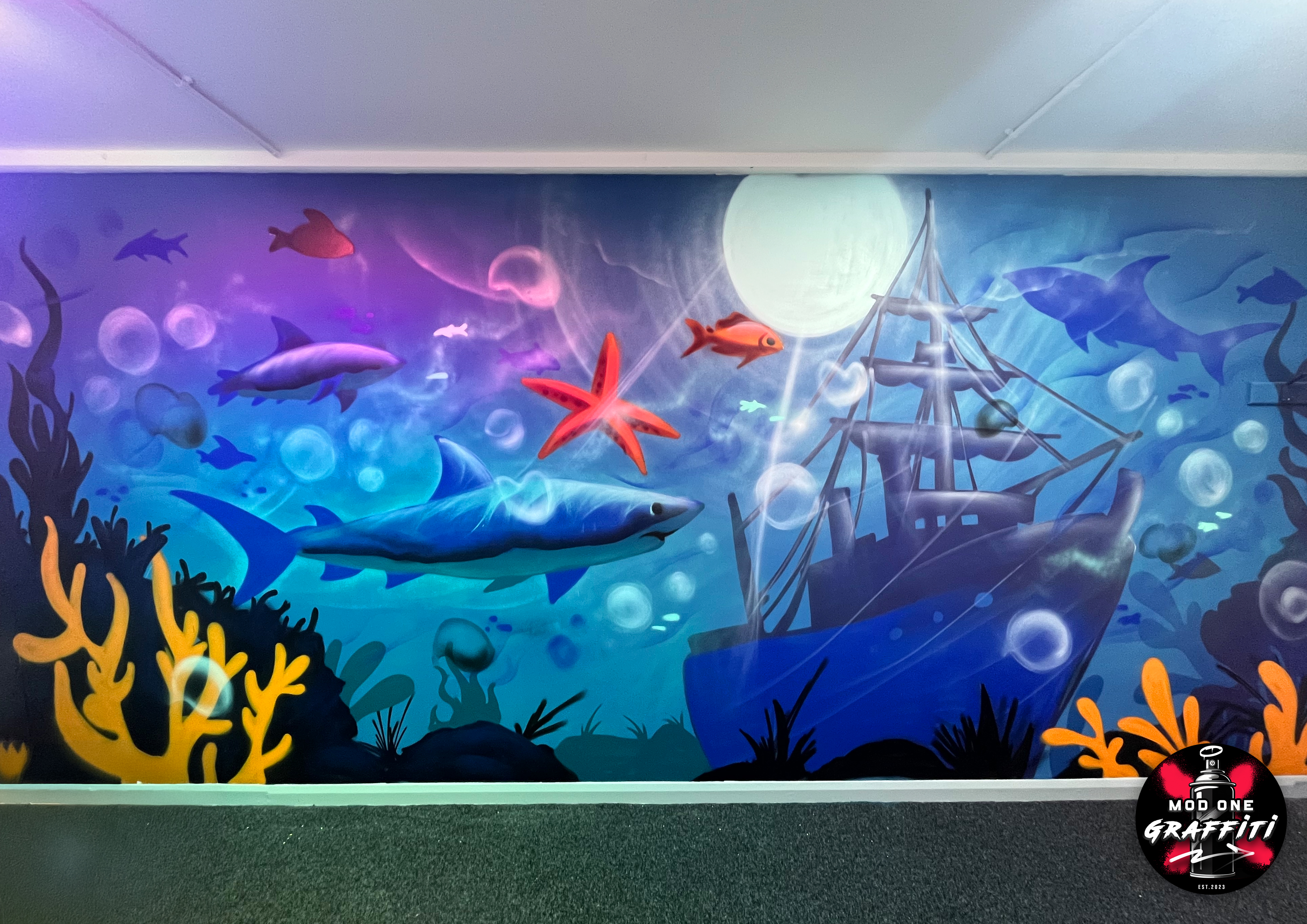 SPECIAL PATHWAYS (BRADFORD) SEA UNDERWORLD INTERIOR WALL PAINTED IN PARTNERSHIP WITH JAMES ARCHER ART