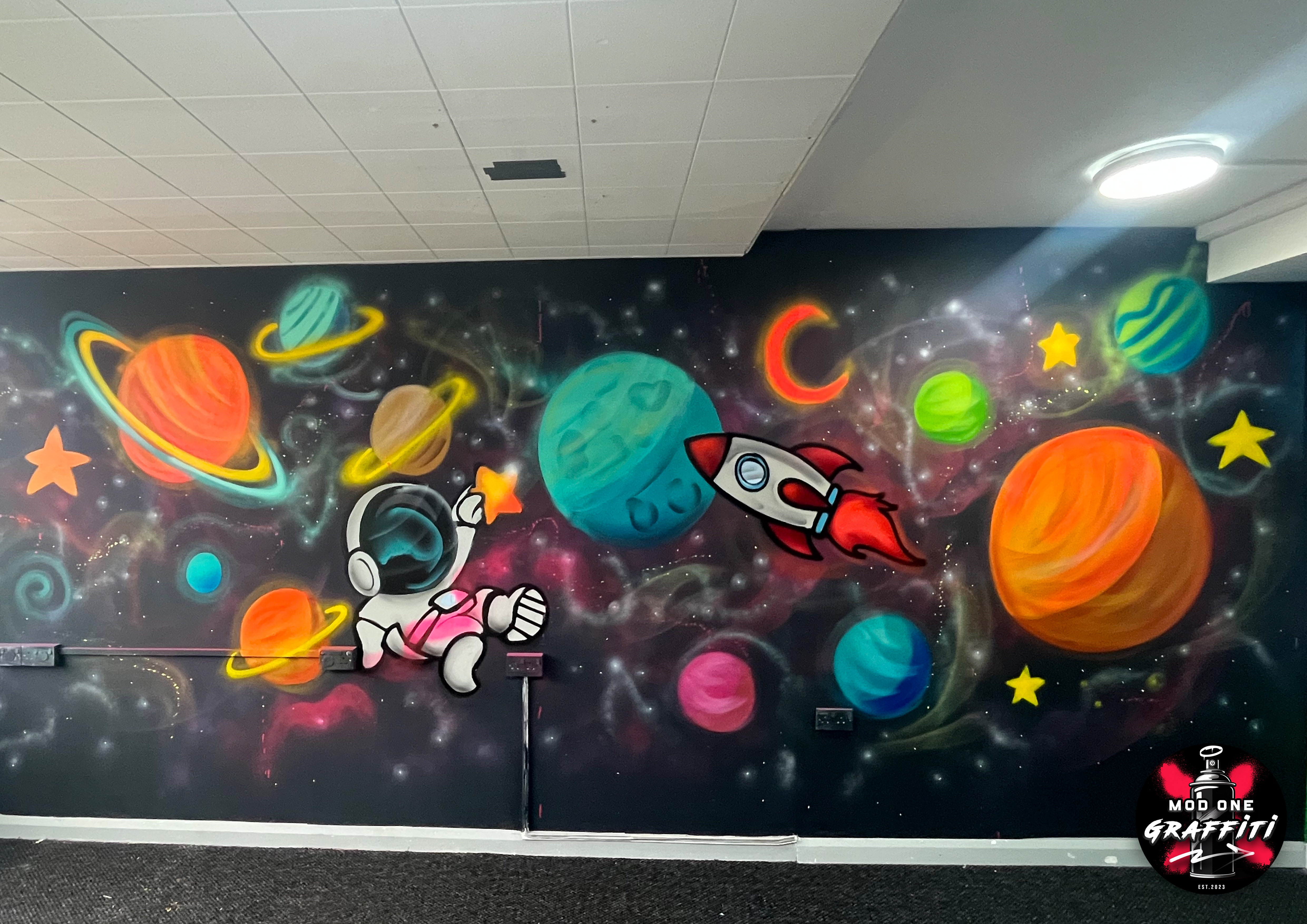 SPECIAL PATHWAYS (BRADFORD) GALAXY THEME INTERIOR WALL PAINTED IN PARTNERSHIP WITH JAMES ARCHER ART