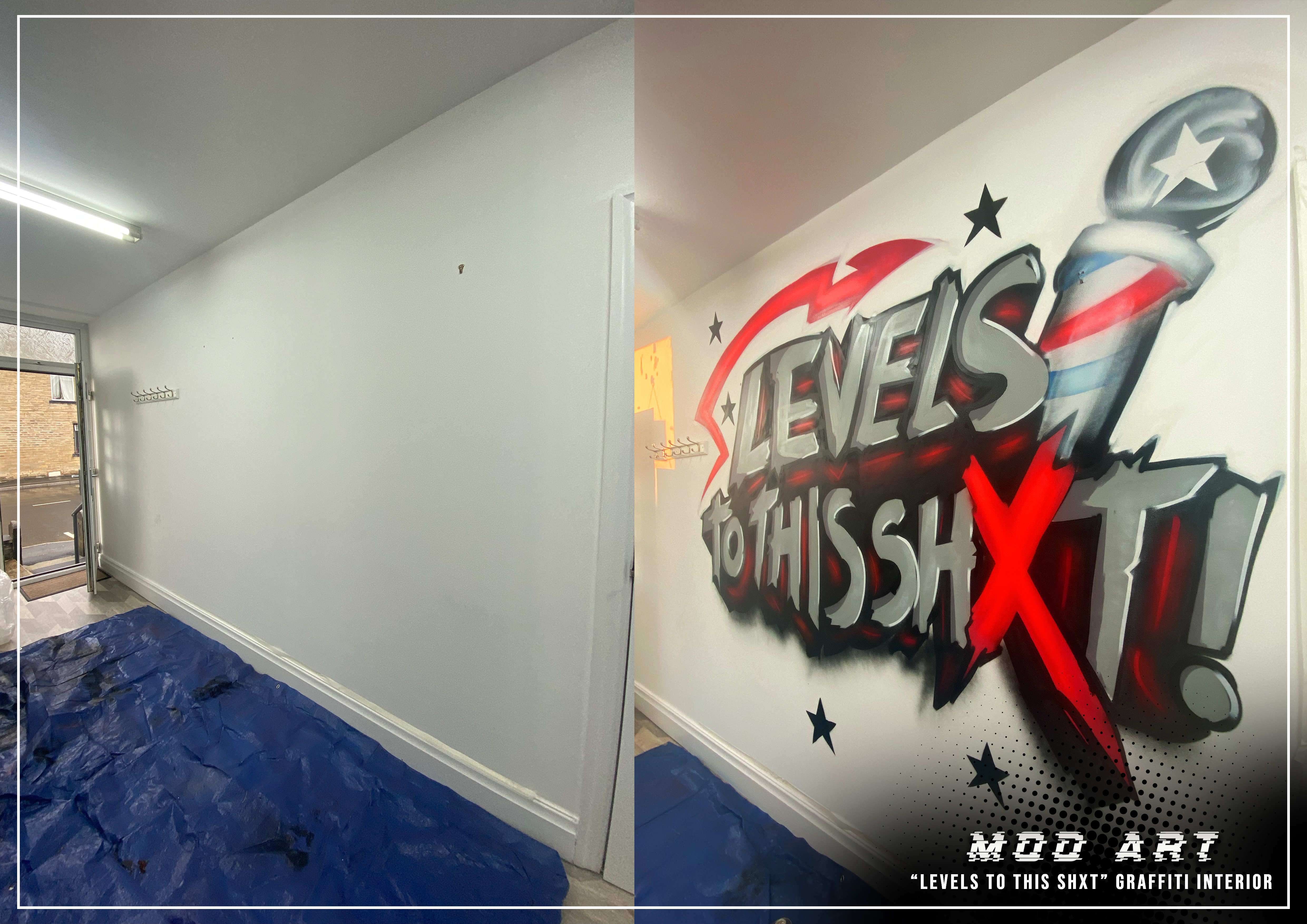 “LEVELS TO THIS SHXT” GRAFFITI BARBER INTERIOR