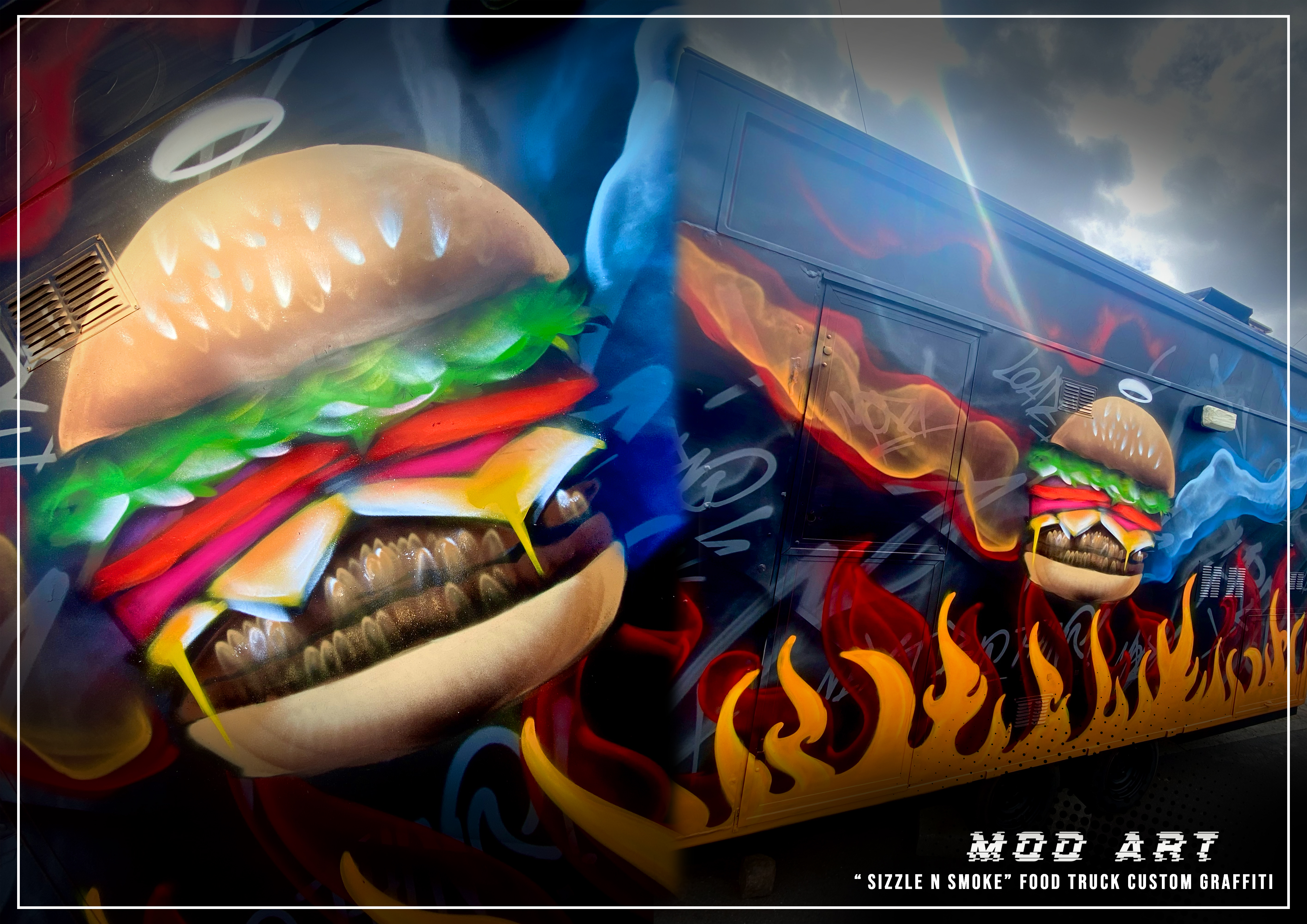 “SIZZLE N SMOKE” FOOD TRUCK CUSTOM GRAFFITI EXTERIOR