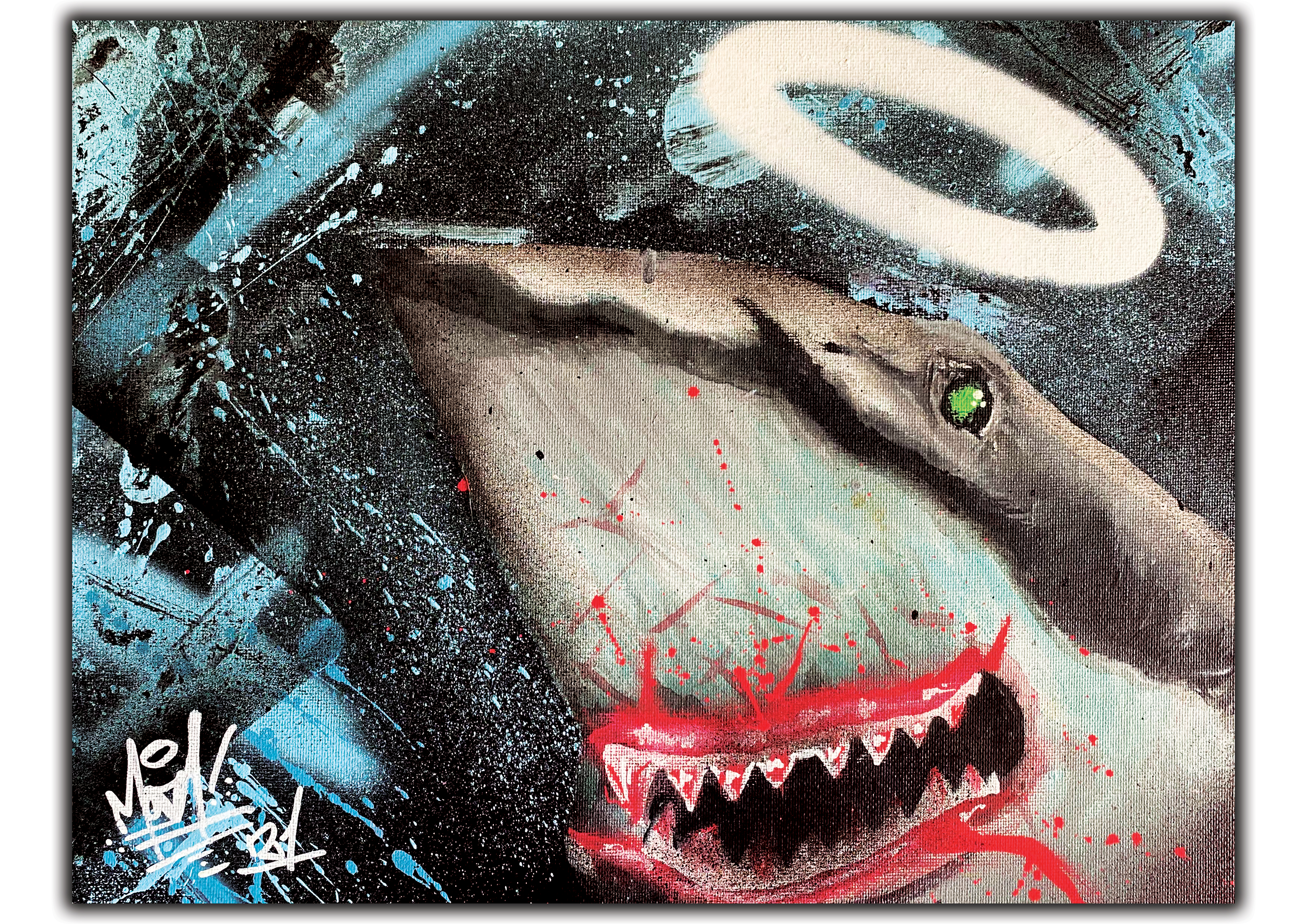 "SHARK ATTACK " 1/1 GIVEAWAY 40 W x 40 H D 2 cm